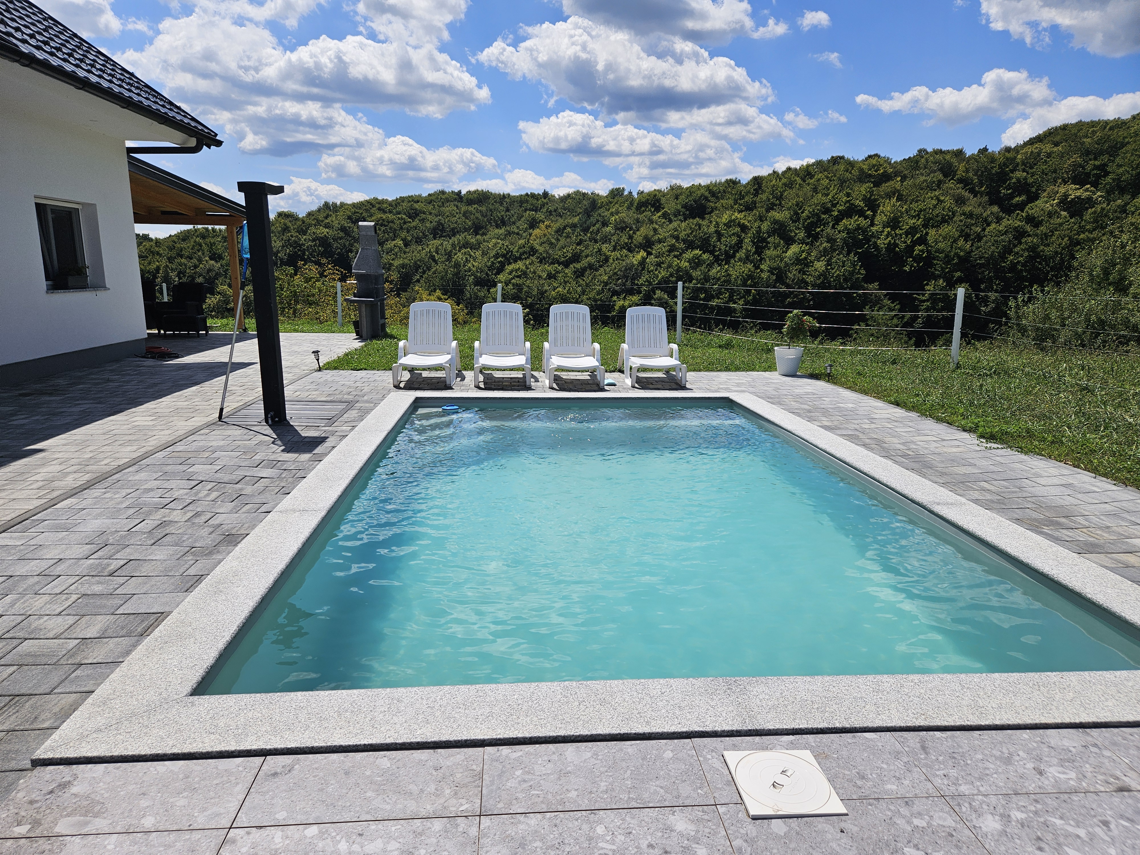 Pool, Solar outdoor shower, Finnish sauna, large indoor bath, outdoor hottub At Villa Hojnik, you can create your own private spa in every season. The house features a Finnish sauna and a large bathtub, while outside there is a 22m² pool, a solar shower, and an outdoor hot tub (jacuzzi) with warm water available year-round.